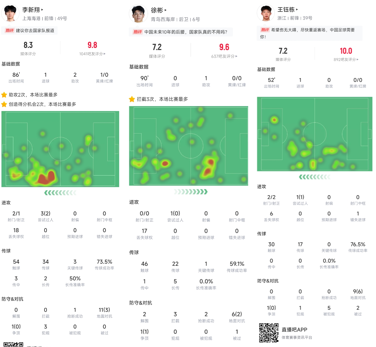 上海海港客场3-3战平青岛西海岸,19岁的海港小将李新翔首发迎来中超首秀,全场比赛1射2传发挥亮眼,帮助海港抢下一分;青岛西海岸20岁的后腰徐彬也表现出色,为阿齐兹送出一次助攻。